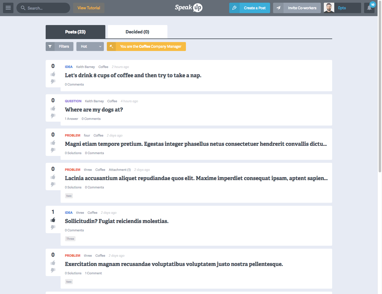 SpeakUp people can see how their activity ranks amongst their co-workers with the Company Leaderboard. It captures the amount of posts, comments and points each user accumulates. Here’s how to access your company’s leaderboard: